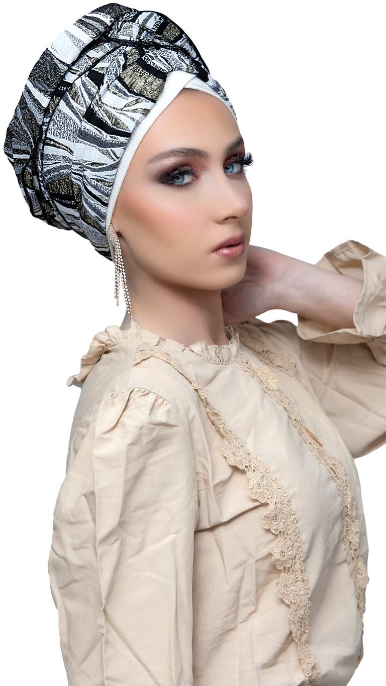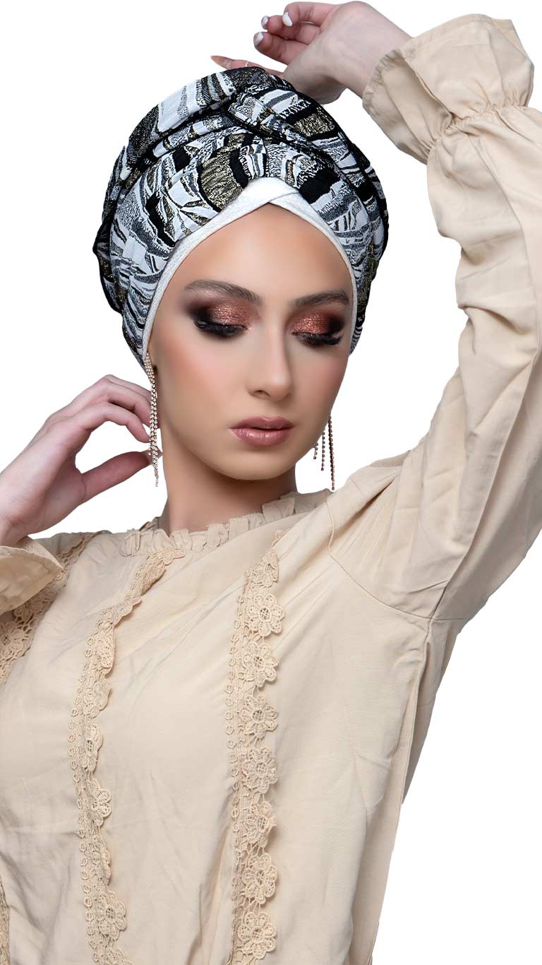 מטפחת לקשירה קלילה פטנט בגווני שחור/לבן/זהב ברונזה