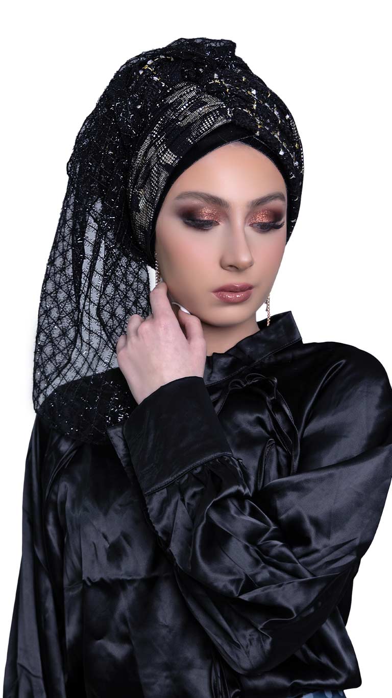 מטפחת מעוצבת טריקולור בגוונים שחור זהב ברונזה