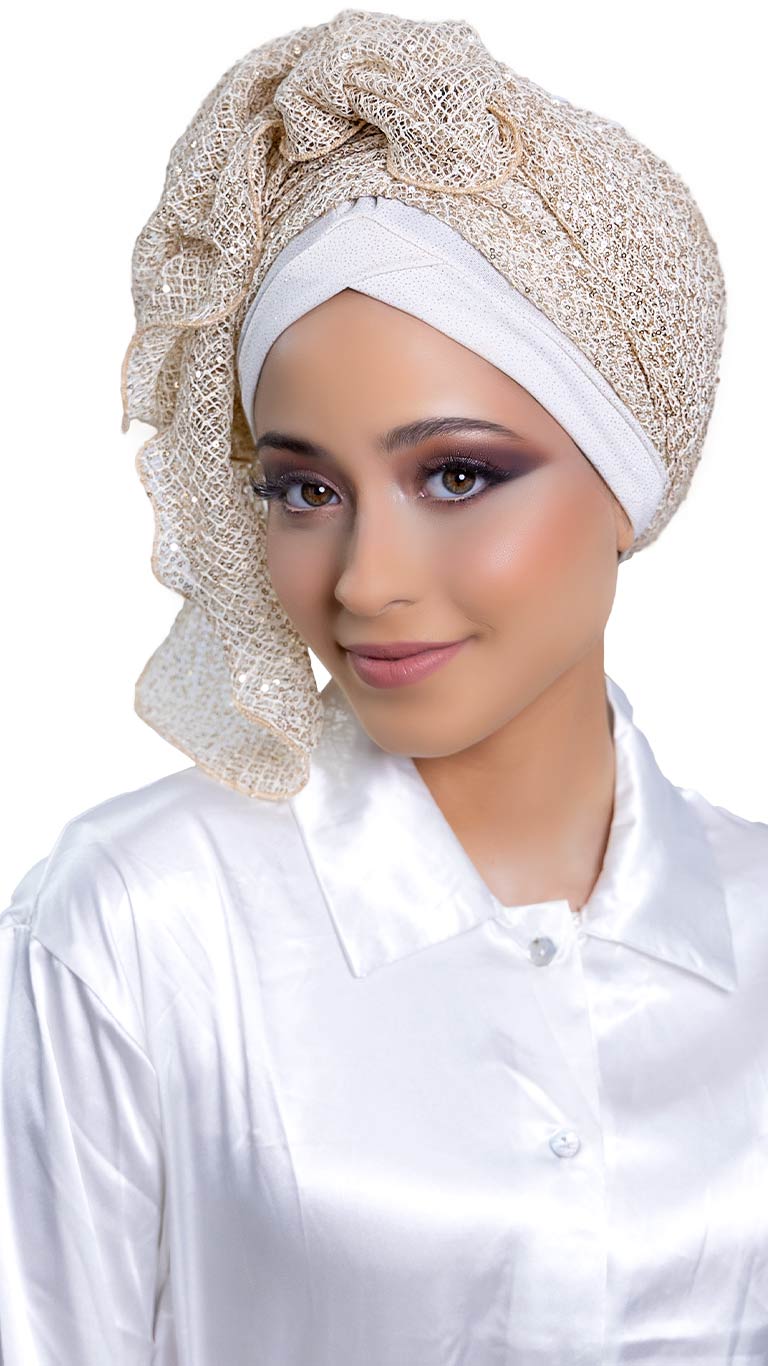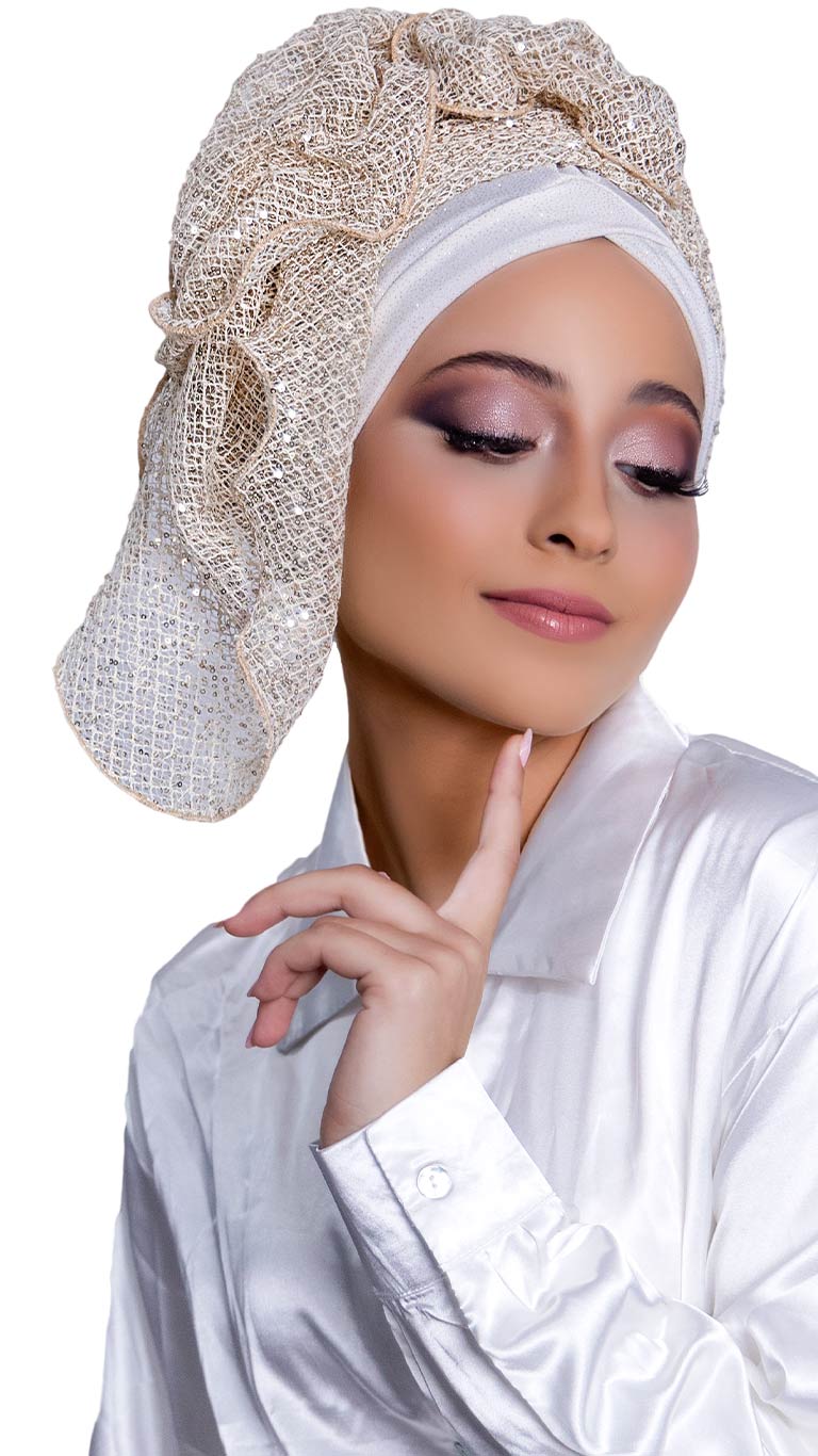 / מטפחת פאייטים שמנת זהב