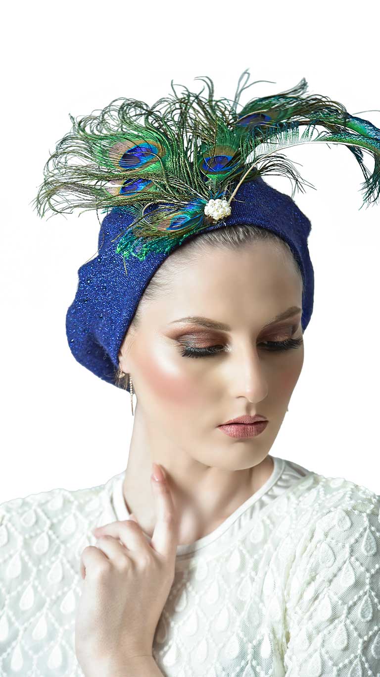 ברט מעוצב טווס הוא ברט מיוחד בצבע כחול רויאל זרקונים ונצנץ