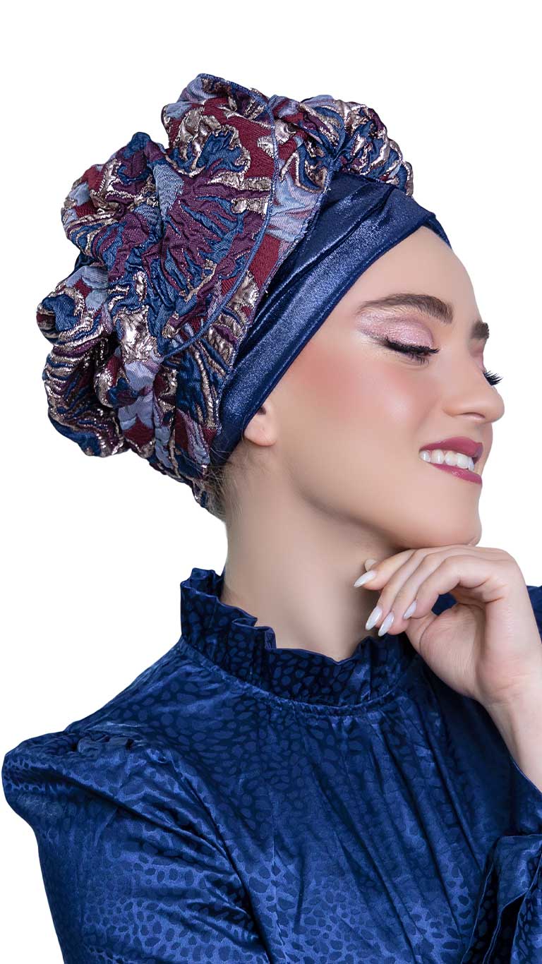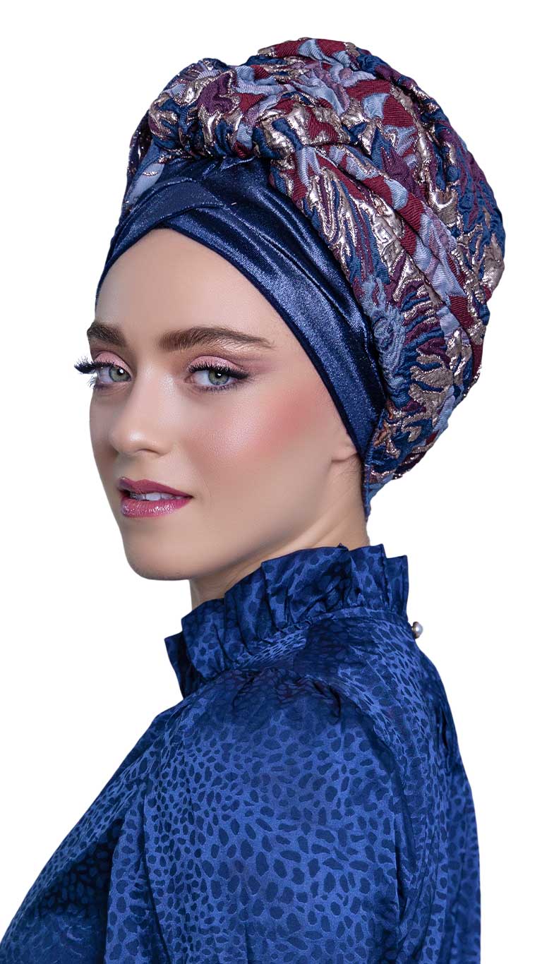מטפחת ברוקד כחול בורדו