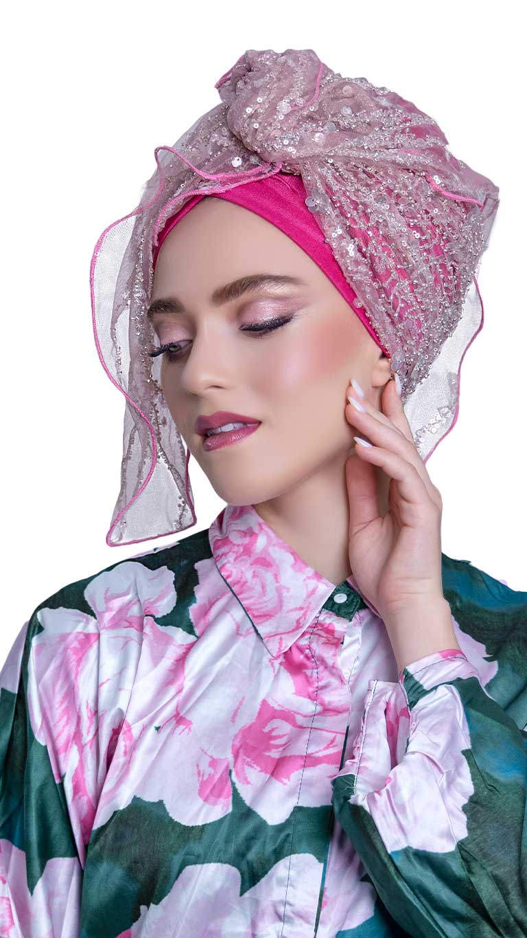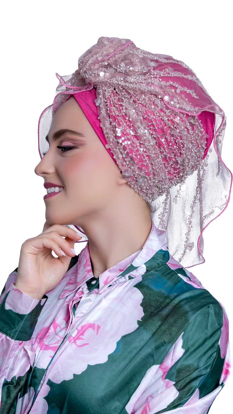 מטפחת טול חרוזים ורודה